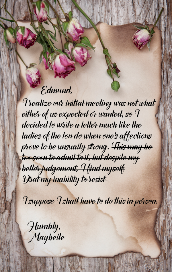 Maybelle and Edmund are two of my favorite characters. They are both very passionate people and know what they want out of life (though they're still figuring out what they want out of each other...) The following letters between Maybelle and Edmund cannot be found in MISTRESS OF PLEASURE. These are bonus letters for my readers with love in honor of Valentine's Day.
